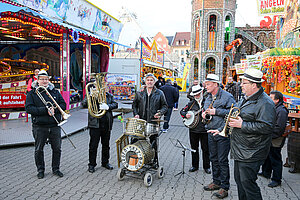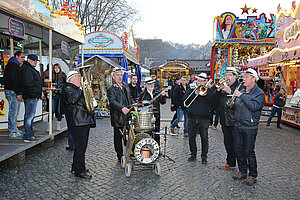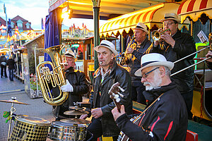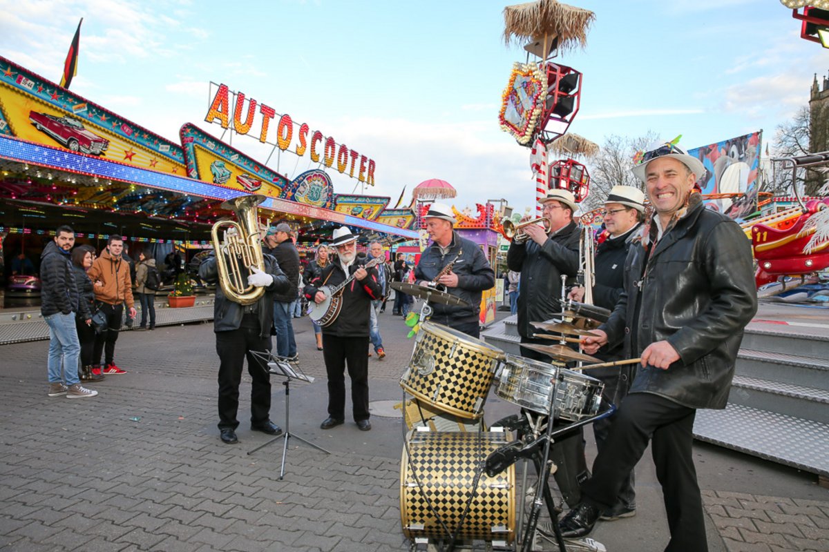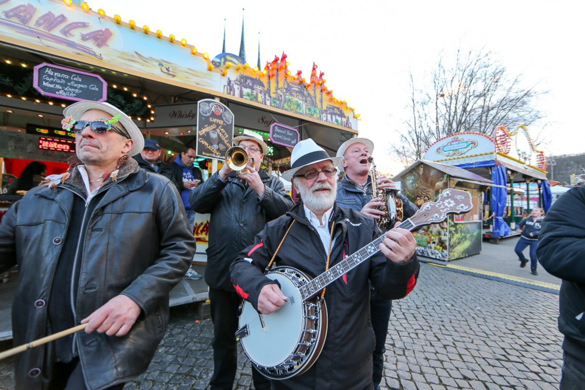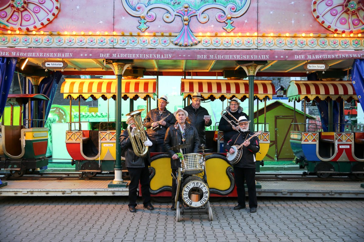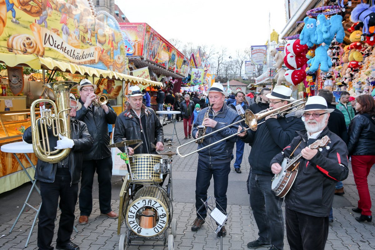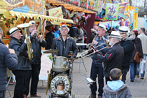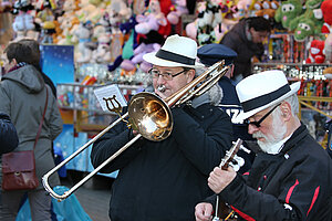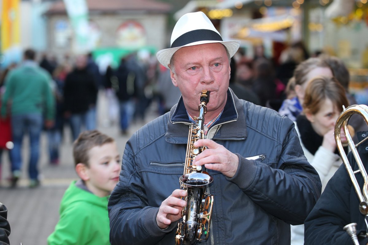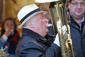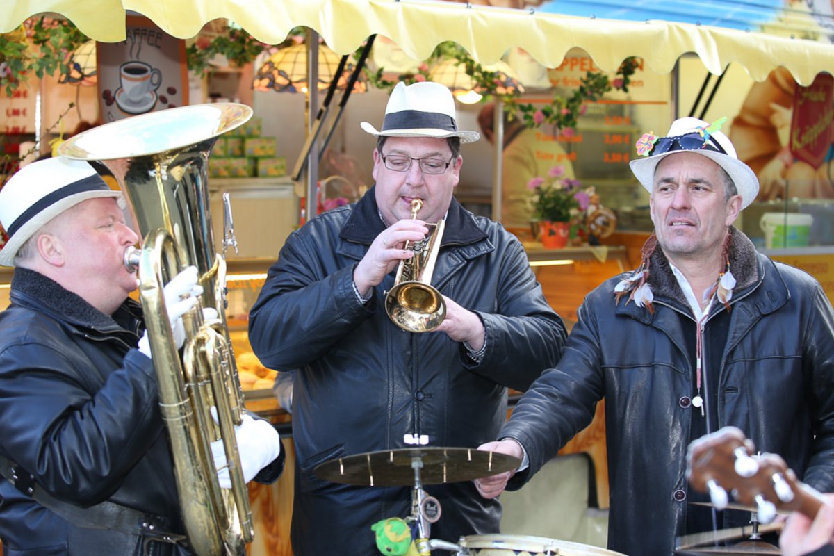 Die Burgen Jazz Band unterhält zum Ostersonntag und Ostermontag die Gäste des Altstadtfrühlings mit ihrer Musik, die so manchen Besucher zum zuhören und mitttanzen inspiriert.