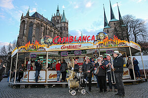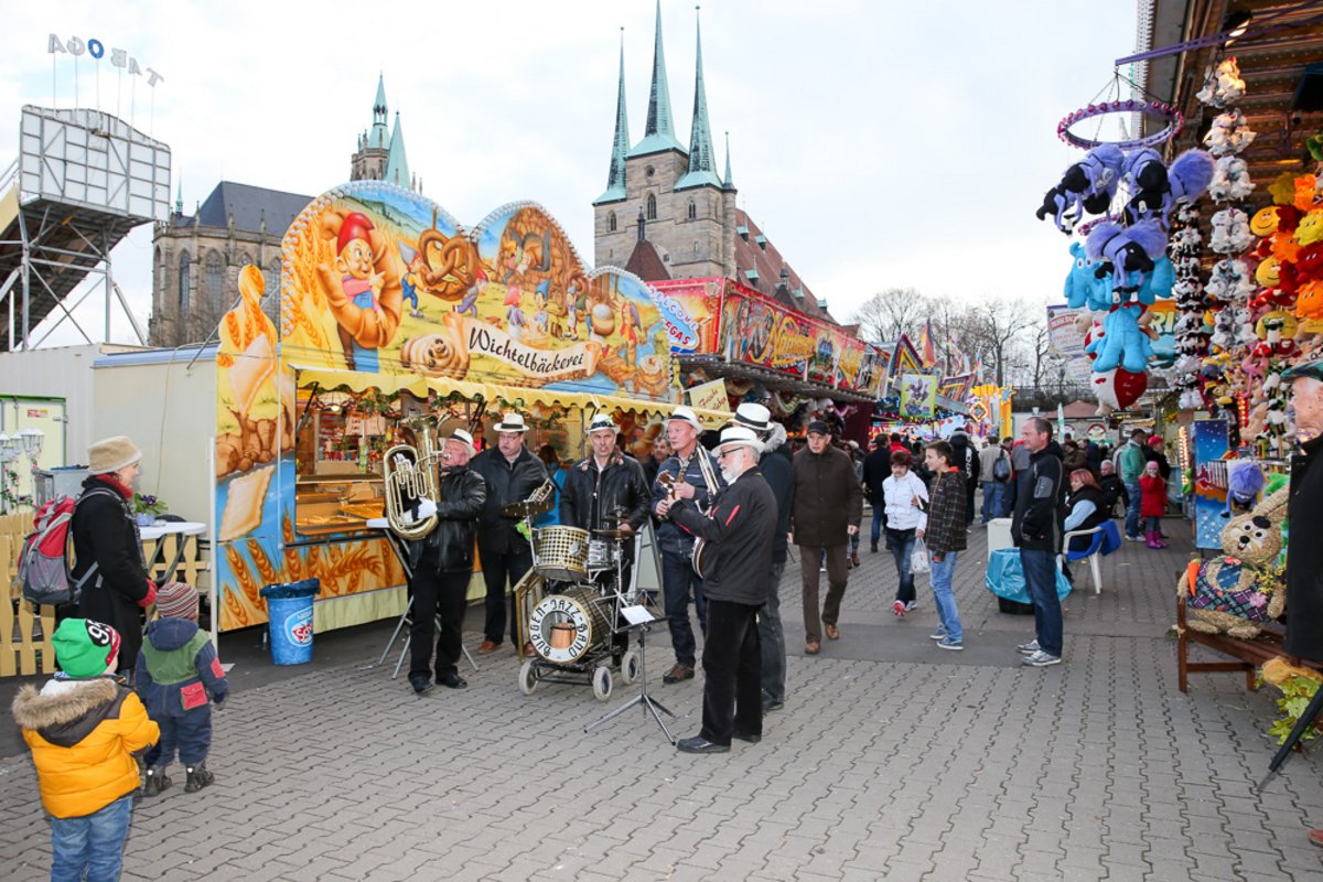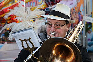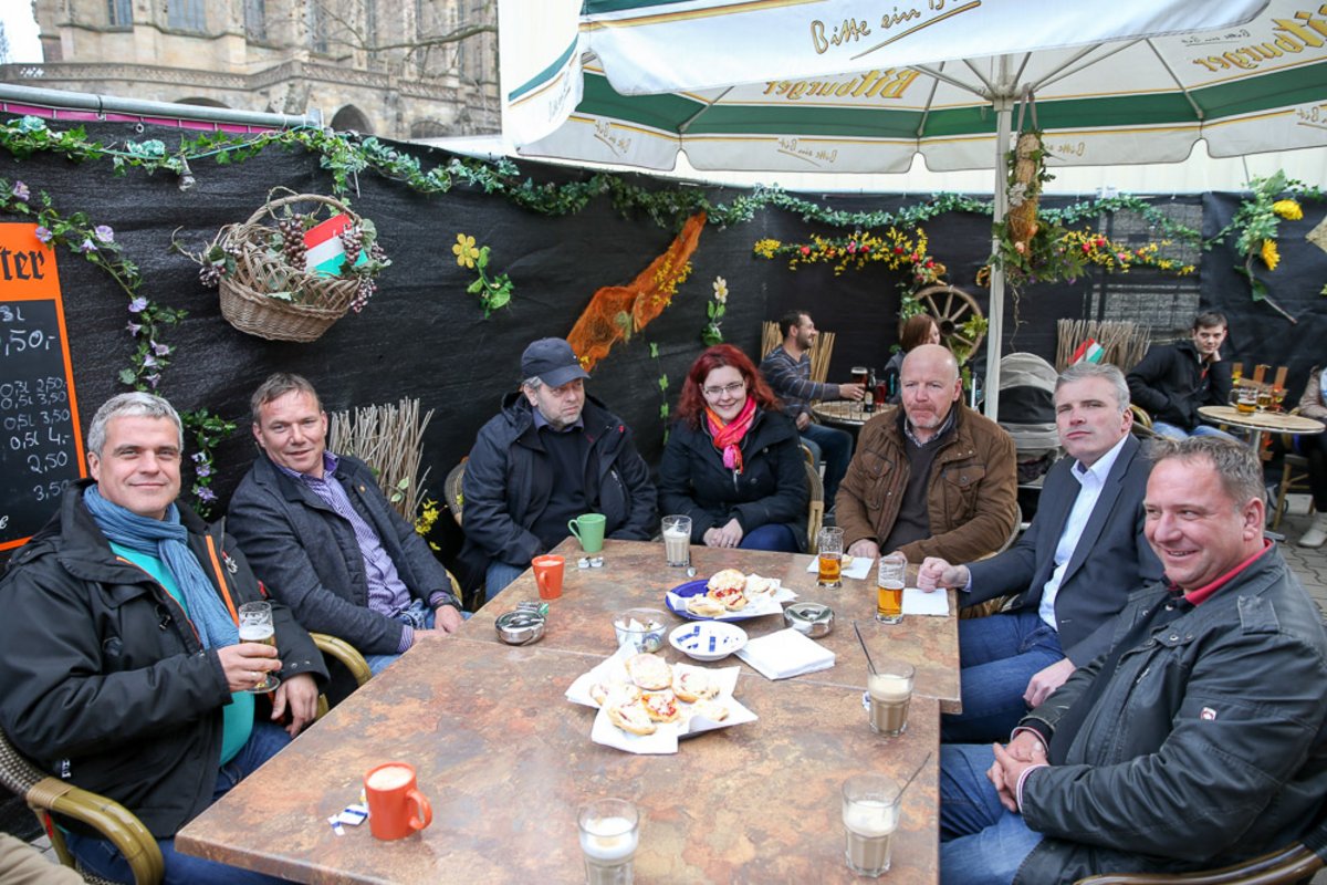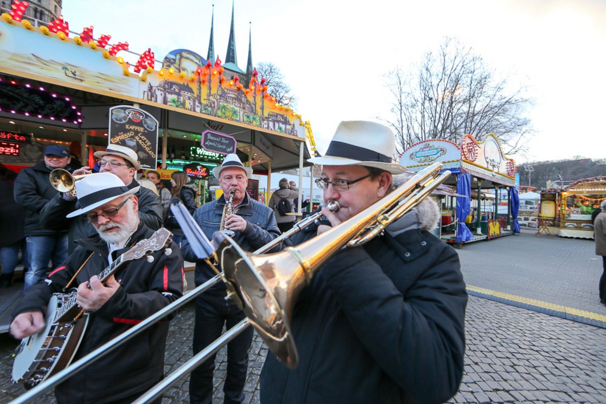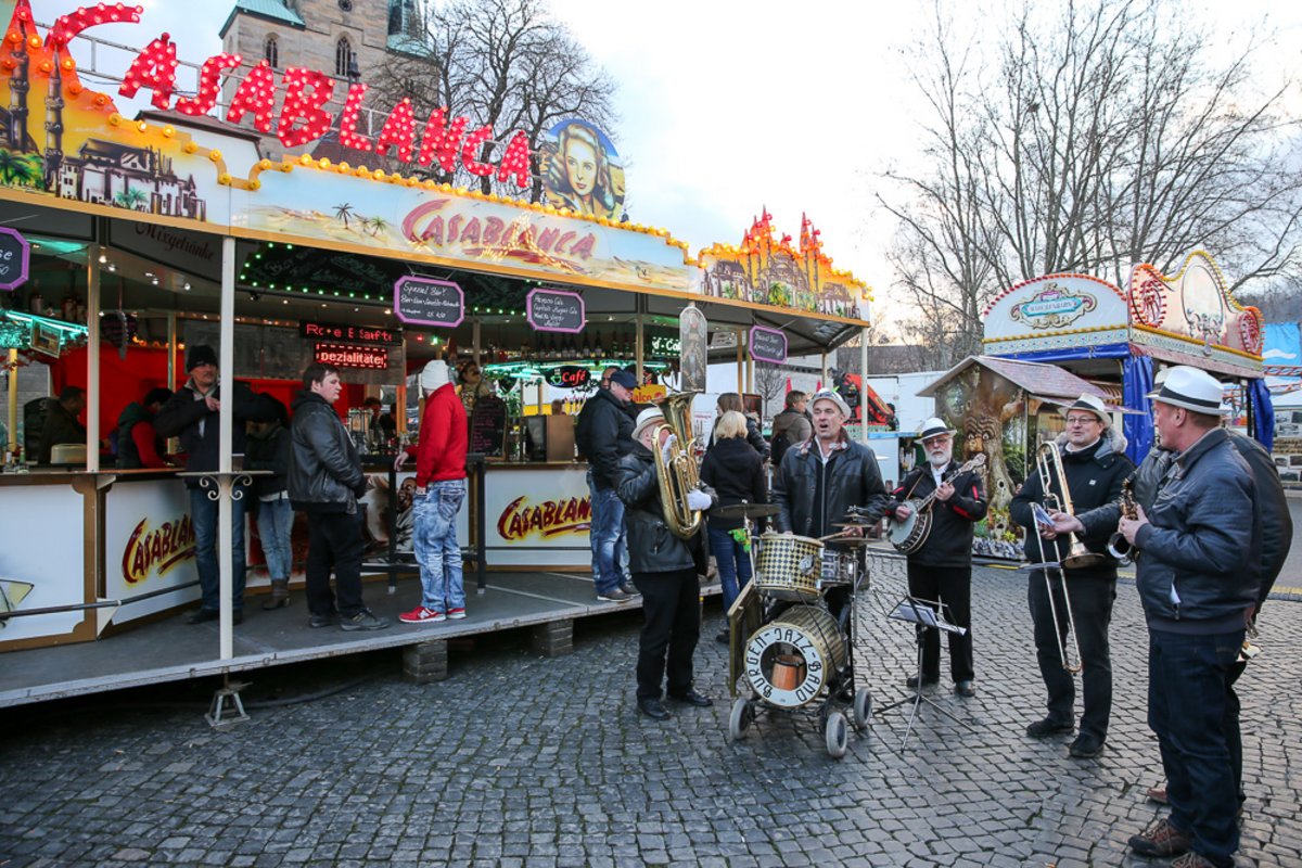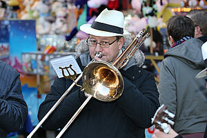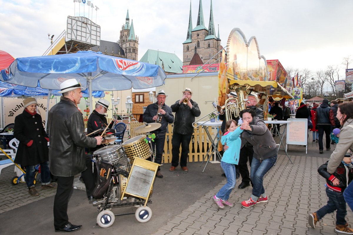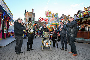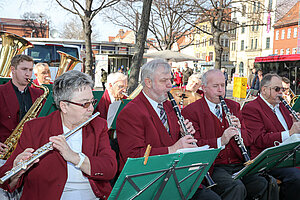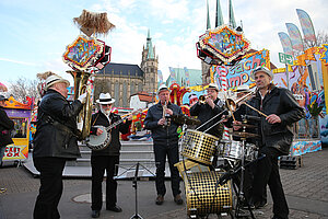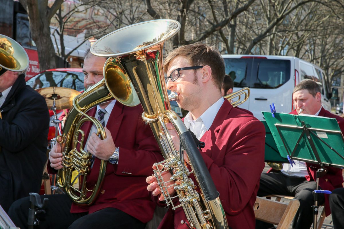 Die Burgen Jazz Band unterhält zum Ostersonntag und Ostermontag die Gäste des Altstadtfrühlings mit ihrer Musik, die so manchen Besucher zum zuhören und mitttanzen inspiriert.