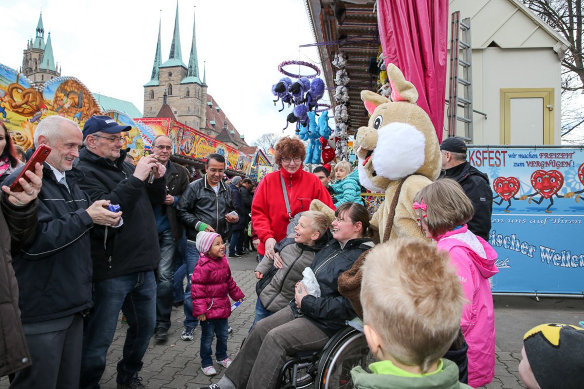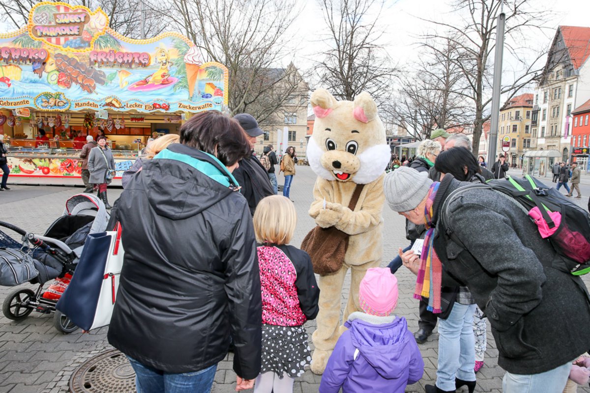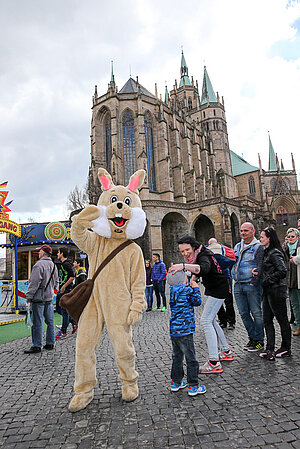 Auch in diesem Jahr besucht uns der Osterhase am Ostersonntag und Ostermontag auf dem Erfurter Altstadtfrühling. Gern nutzt er die zahlreichen Attraktionen und lädt Klein und Groß zum mitfahren ein. Natürlich hat er wieder seine große Tasche dabei mit kleinen Überraschungen um Kindern eine Freude zu machen.