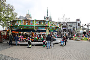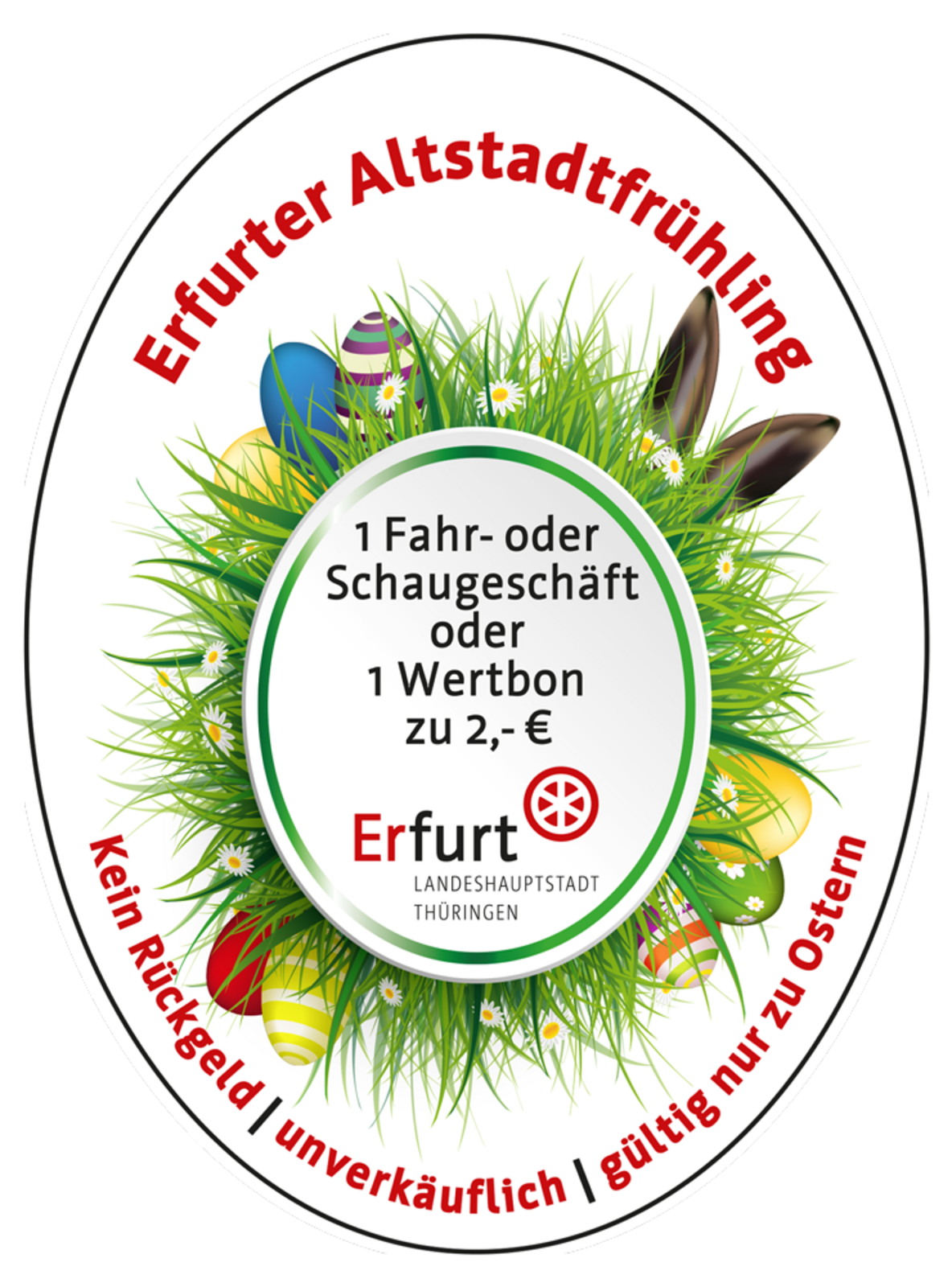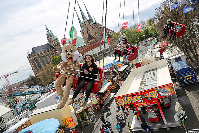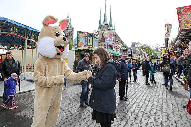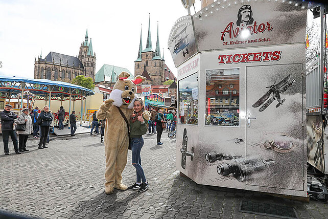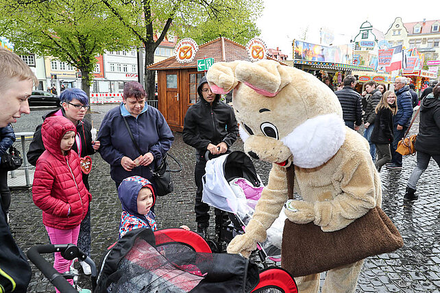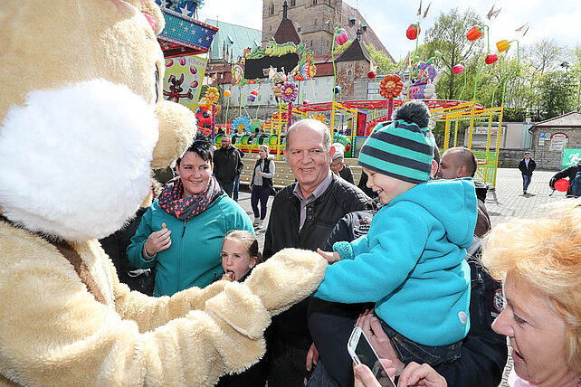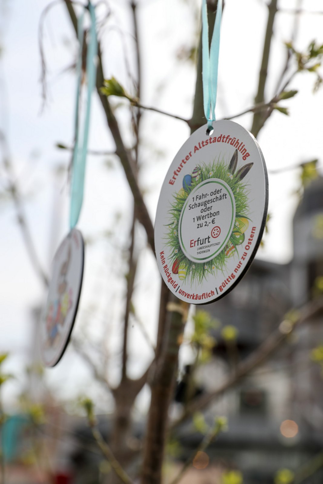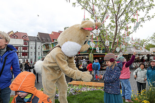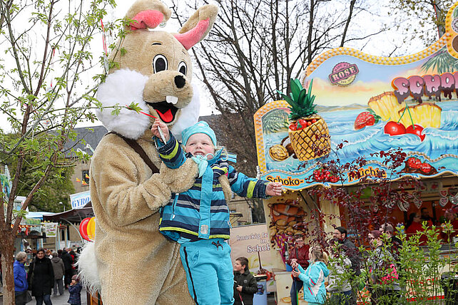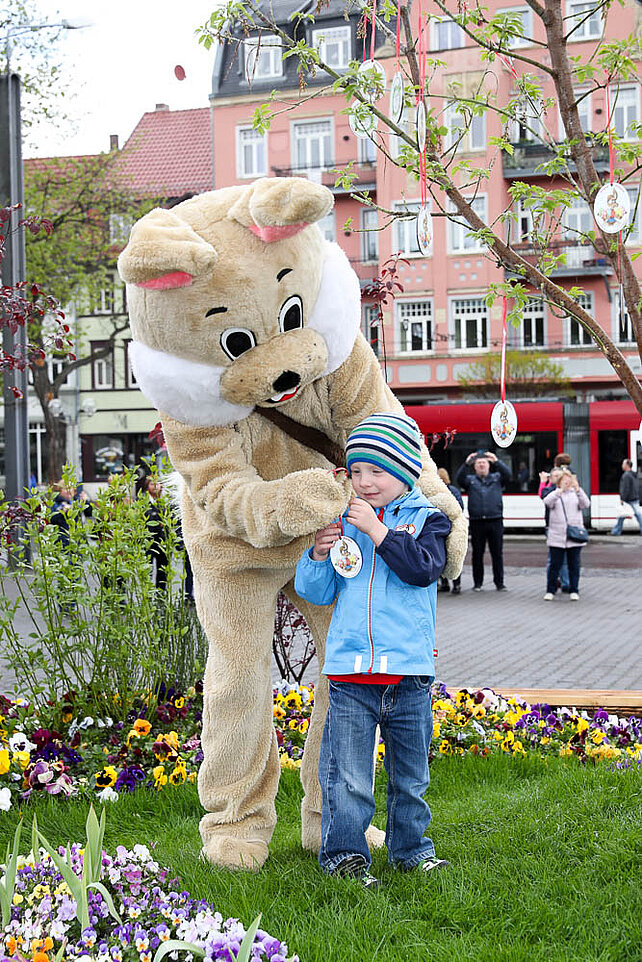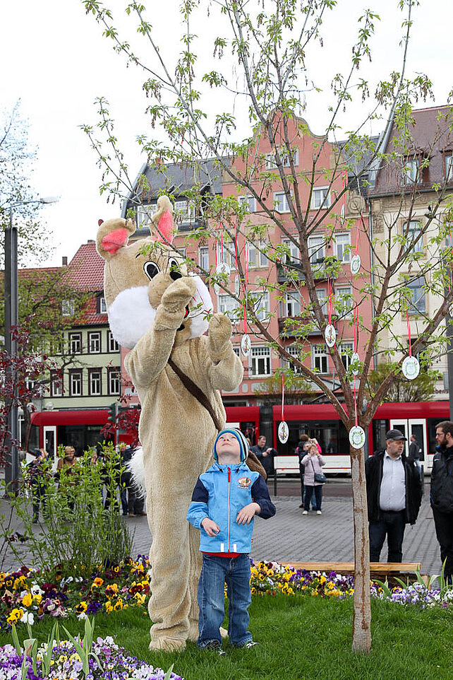 Am Eingang zum Altstadtfrühling, von der Marktstraße aus, steht das Erste mal unser Ostereier-Baum. Wenn der Osterhase zum Altstadtfrühling über den Platz hoppelt, werden viele bunte Fahrchips am Baum hängen, die dann mit dem Osterhasen zusammen gepflückt werden dürfen. Diese Fahrchips und Wertbons zu 2 € werden auch durch den Osterhasen am Ostersonntag in der Zeit von 14 - 17 Uhr und am Ostermontag von 13 - 16 Uhr verteilt.