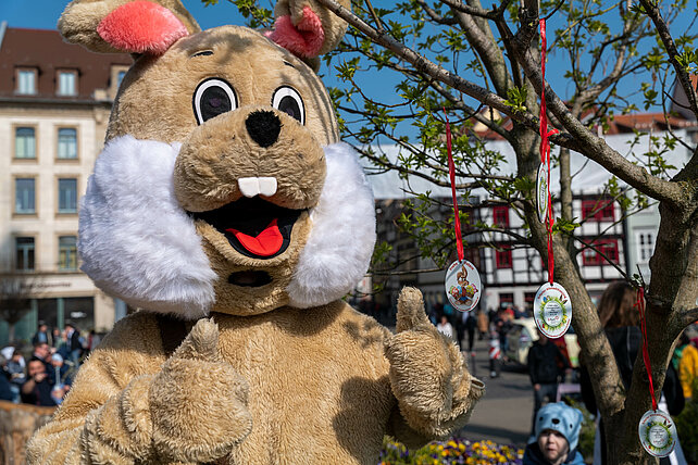 Am Ostersonntag war der Osterhase auf dem Domplatz und verteilte seine Ostereier.