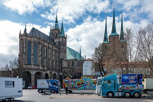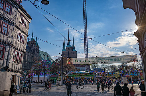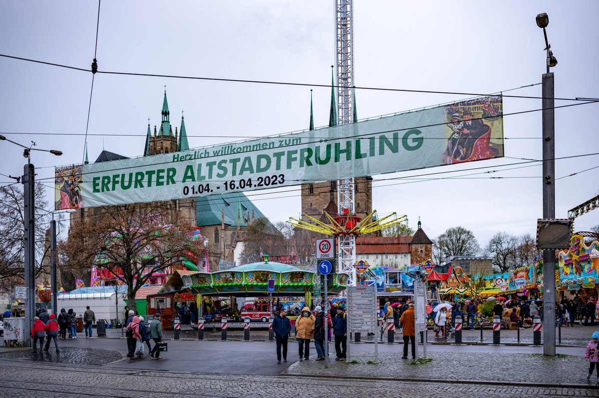 Auch wenn das Wetter nicht immer so sehr schön ist, lohnt ein Besuch des Erfurter Altstadtfrühling. Wie man sieht, kann man auch bei Regen seinen Spaß haben.